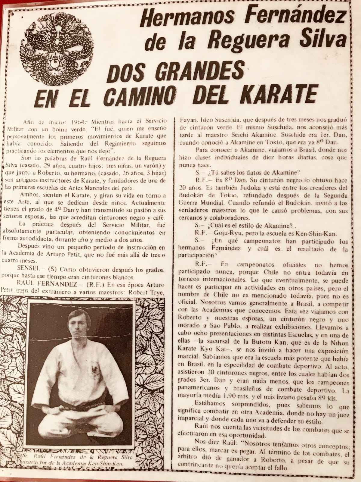 Sensei Raúl nos relató en una oportunidad, muchos años atrás, una parte de su vida compartida con el Maestro Akamine y queremos compartirla en esta sección.